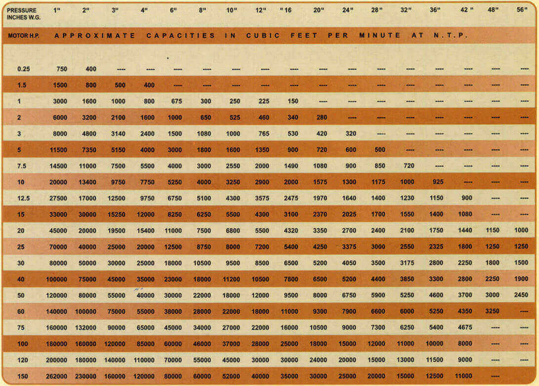 Technical Data for centrifugal Blowers